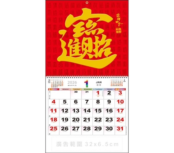 - 月曆紙質:120g 特級銅版紙